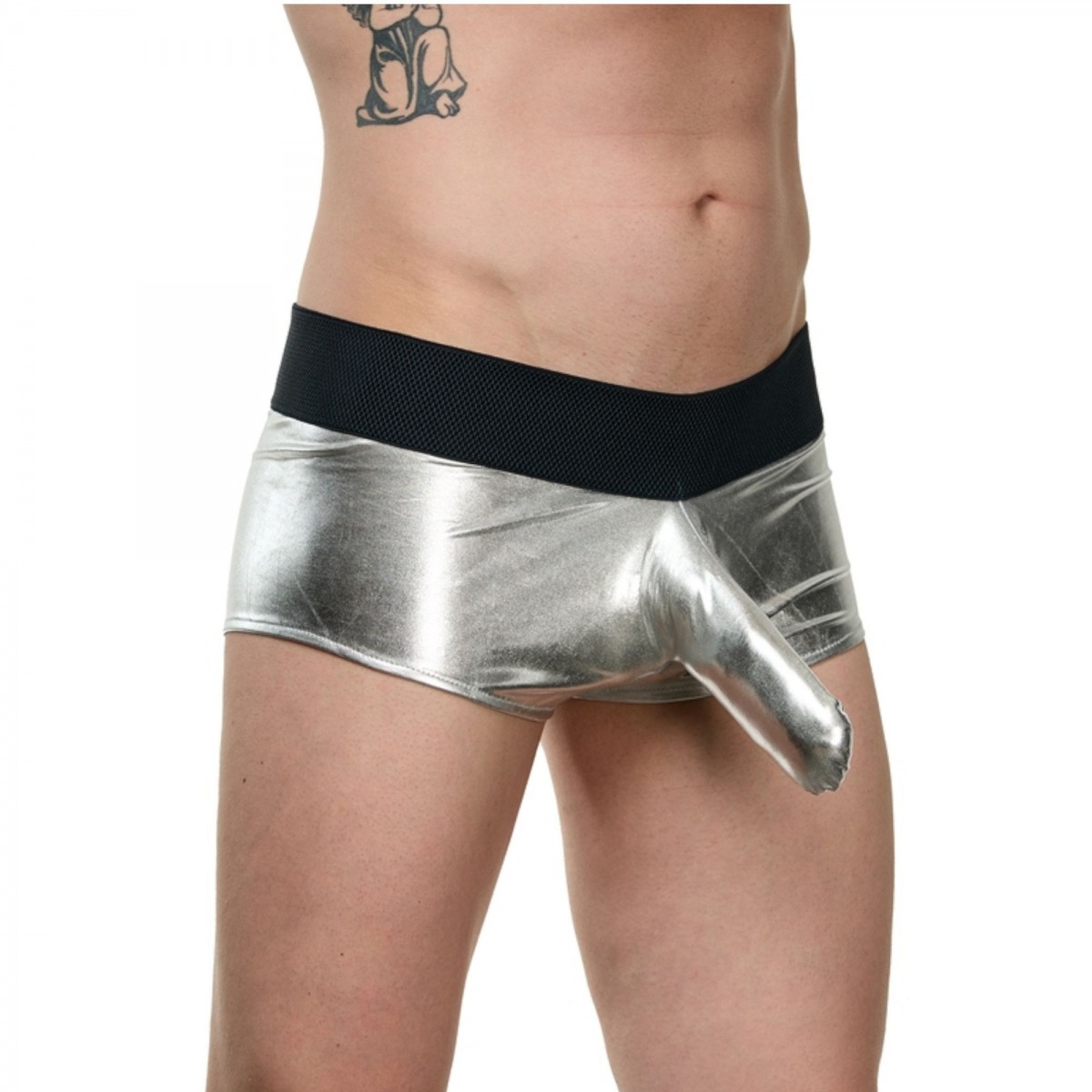 Мужские блестящие трусы-боксеры с кармашком под член.