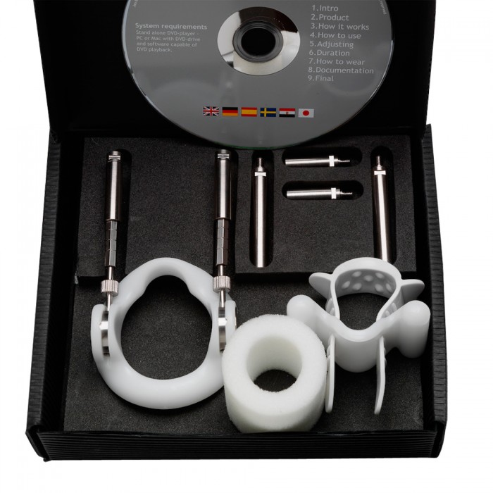Jes-Extender представляет собой аппарат для удлинения мужского полового органа с помощью растягивающего усилия. Его действие основано на способности реакции тканей при воздействии на них длительного растягивающего усилия, которое вызывает в этих тканях увеличение количества клеток. Эта модель может быть использована только на пенис размером до 17 см . Комплектация: удлиняющие стержни (2х5 см, 2х2,5 см), фиксирующий ремешок, силиконовый жгут-фиксатор, смягчающая прокладка, упорное кольцо с пружинным механизмом. К товару прилагается DVD-инструкция, инструкция на русском языке, набор ключей.