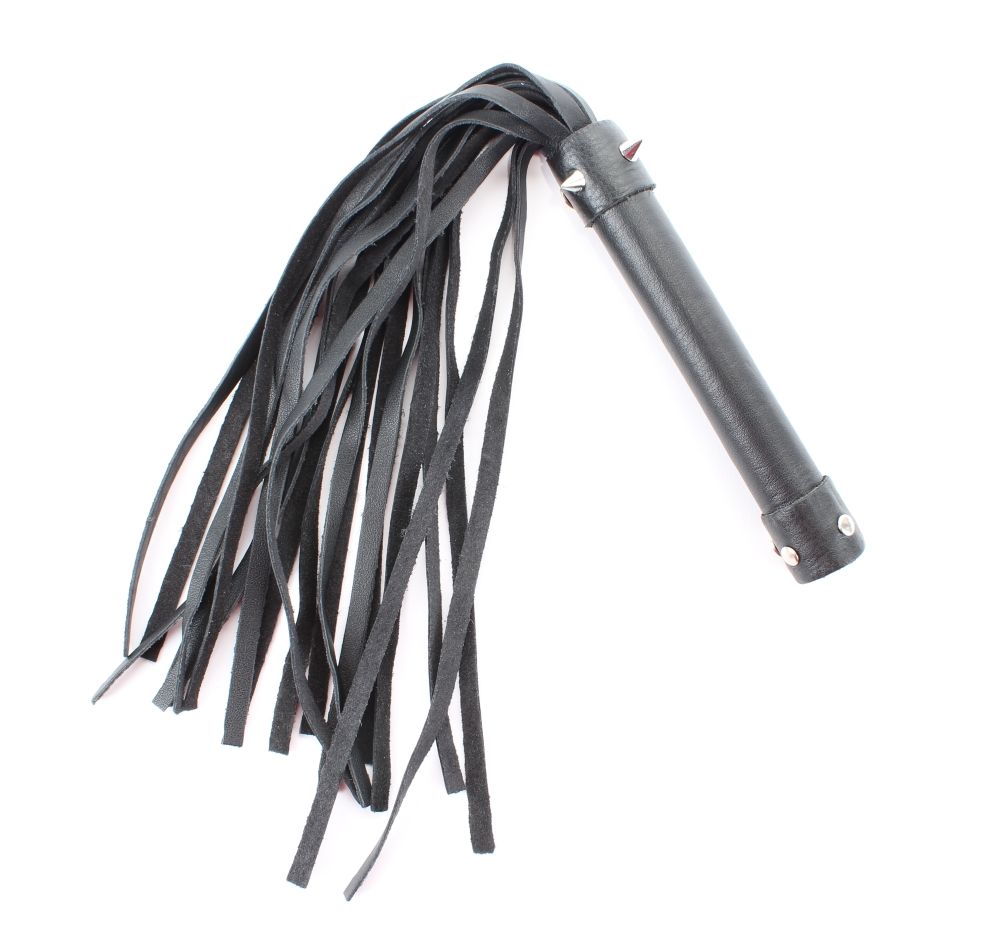 Плеть изготовлена из натуральной кожи, имеет 20 хвостов. Хвосты имеют вид лент. Украшена металлическими аксессуарами. Длина хвостов - 40 см.