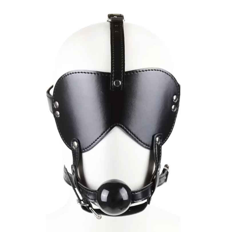 Сплошная маска-шоры с регулируемыми ремешками и кляпом-шариком. Диаметр шарика - 4 см.