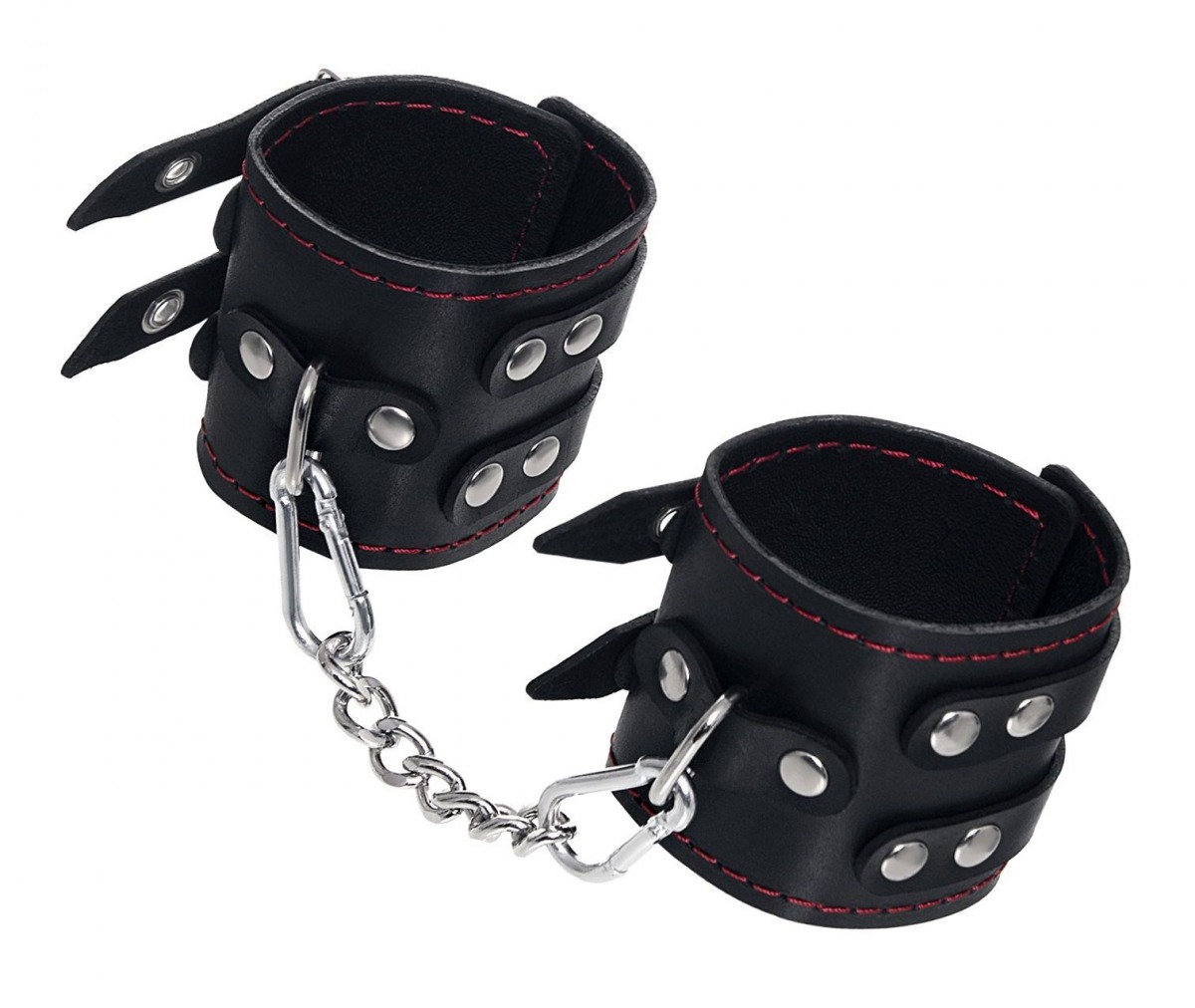 Эти кожаные наручники с двумя ремнями и чёрной подкладкой могут стать стильным аксессуаром, а могут послужить вашим целям по своему прямому назначению. Частичное обездвиживание и невозможность двигать руками дают вам полную власть над партнером – взрослые игры для взрослых. Наличие двух колец и карабинов, соединенных между собой металлической цепочкой, позволяет использовать изделие как раздельно – аксессуар-манжеты, так и как наручники для фиксации. К широким металлическим кольцам также можно присоединить и другие аксессуары при помощи карабинов. Благодаря универсальному размеру наручники могут использоваться и мужчинами, и женщинами. Размер легко регулируется с помощью металлических пряжек, органично вписывающихся в общий стиль. Длина манжет - 20 см, ширина - 7 см. Длина сцепки - 13 см.