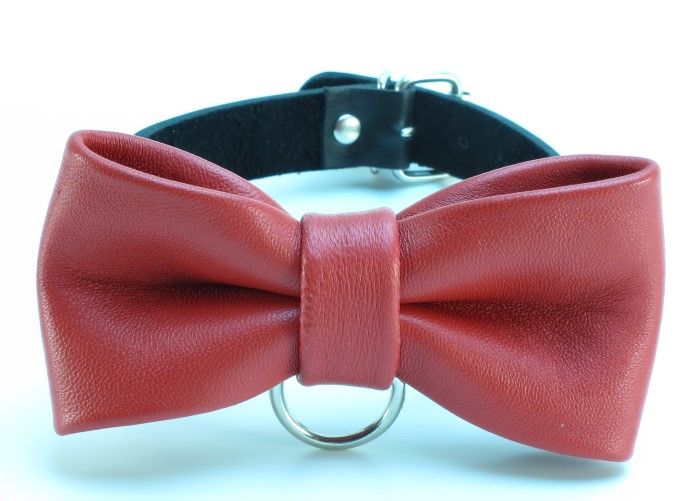 Черный ошейник с красной бабочкой идеально подойдет как для мужчин, так и для женщин. В ошейник вставлено D-кольцо, с которым фетиш-изделие соединяется с бандажом или поводком. Ширина ошейника - 1,5 см., бабочки - 6 см.