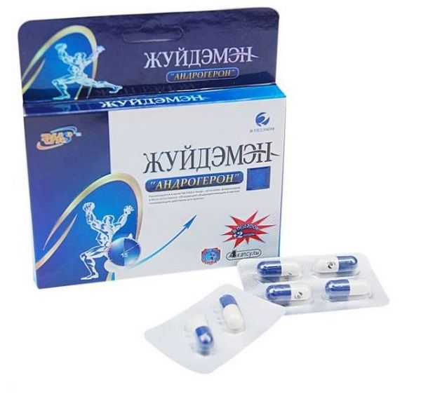 Андрогерон оказывает возбуждающий эффект, стимулирует кровообращение в сосудах полового органа, усиливает секрецию гормонов, посредством этого достигается быстрая и длительная эрекция. Содержит несколько десятков питательных элементов, активизирующих мужскую сексуальную энергию. Дополнительное действие андрогерона: укрепляет сердце, улучшает работу кровеносной системы, питает клетки почек, успокаивает нервные окончания, увлажняет легкие, останавливает кашель, облегчает дыхание, положительный эффект при усталости. Препарат совместим с алкоголем. Преимущества капсул «Андрогерон»: 1. Быстрый эффект - обычно через 15-30 минут после применения проявляется эффект Скорость восстановления эрекции после применения капсул «Андрогерон» выше, чем после химических препаратов, эрекция протекает гораздо сильнее, а период возбужденного состояния особенно длителен. Капсулы «Андрогерон» также питают и укрепляют организм. 2. Растительный состав препарата питает и оздоравливает организм. Он не содержит гормонов, химических компонентов, не противопоказан людям, употребляющим алкоголь. Капсулы «Андрогерон» не дают побочных эффектов, безопасны и надежны, в то же время они содержат питательные вещества, укрепляют организм и повышают иммунитет, подходят для применения людям с различными заболеваниями. 3. Длительный эффект - препарат оказывает лечебное действие в течение 3 - 5 дней. Лечебное воздействие капсул «Андрогерон» мягкое и длительное, они лечат как симптомы, так и причину заболевания, полностью мобилизуют потенциальные возможности организма, приводя к ярким ощущениям. Однократное применение обеспечивает длительный эффект. 4. Капсулы «Андрогерон» являются примером совершенного сочетания тысячелетней традиции китайской медицины и достижений современных высоких технологий. 5. Капсулы «Андрогерон» отличаются приемлемой ценой, их стоимость в 3 раза ниже стоимости аналогичных химических препаратов. Рекомендации по применению: рекомендуется в качестве БАД к пище, обладающей общеукрепляющим и мягким тонизирующим действием для мужчин. Препарат показан людям с пониженной потенцией и с преждевременной эякуляцией. Противопоказания: индивидуальная непереносимость компонентов БАД, повышенная нервная возбудимость, бессонница, повышенное артериальное давление, нарушение ритма сердечной деятельности, выраженный атеросклероз, прием в вечернее время. Перед применением рекомендуется проконсультироваться с врачом. В упаковке 6 капсул: 4 + 2 в подарок.