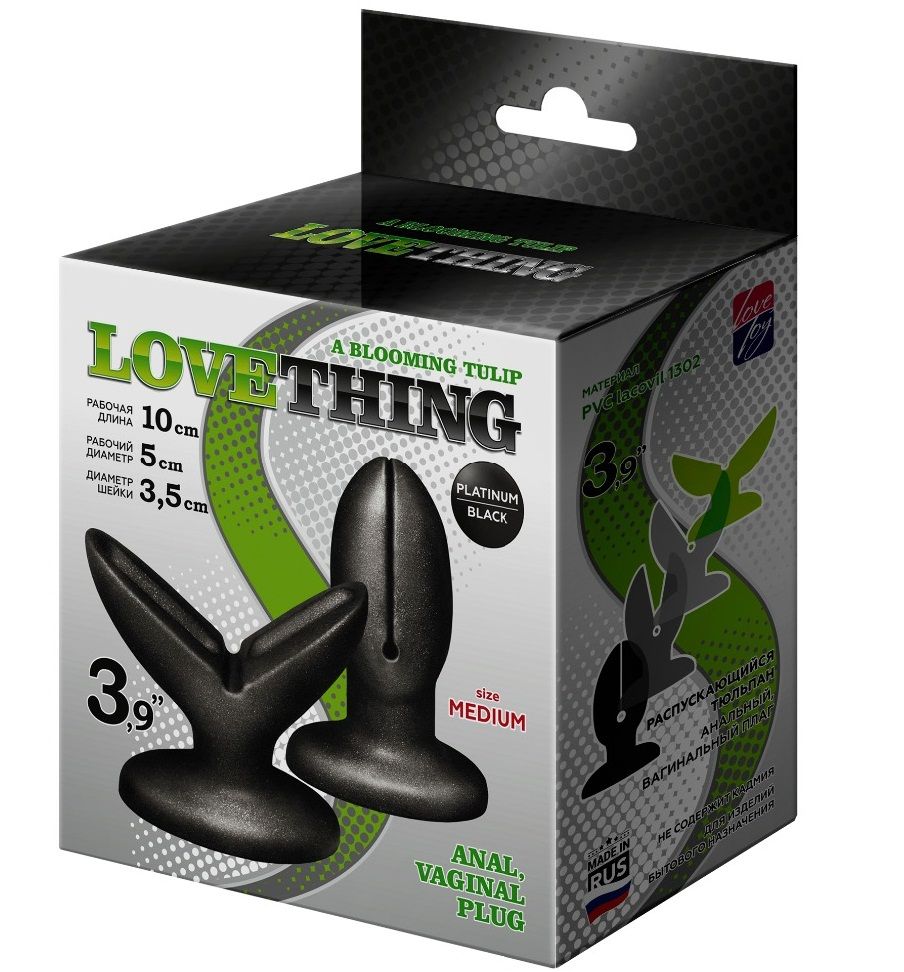 Любовная игрушка, похожая на тюльпан, получила свое название из-за схожего внешнего вида и раскрывающихся лепестков в процессе введения в анус или влагалище. Таким образом решается задача внутренней фиксации пробки и, что важнее, обеспечивается интенсивная стимуляция рецепторов свода влагалища (точки Джи) у женщин или стенок прямой кишки и простаты у мужчин. Лепестки упругие, гладкие с внешней стороны и достаточно бережно ласкают эрогенные зоны при вращательных движениях. Рабочая длина - 10 см.