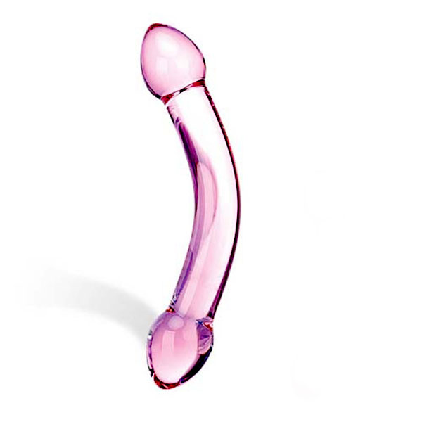 Изогнуты двухголовый стимулятор из закаленного стекла ручной работы. Полностью прозрачный фаллос с нежным фиолетово-розовым оттенком. Длина стимулятора: 19 см. Максимальный диаметр: 4 см.