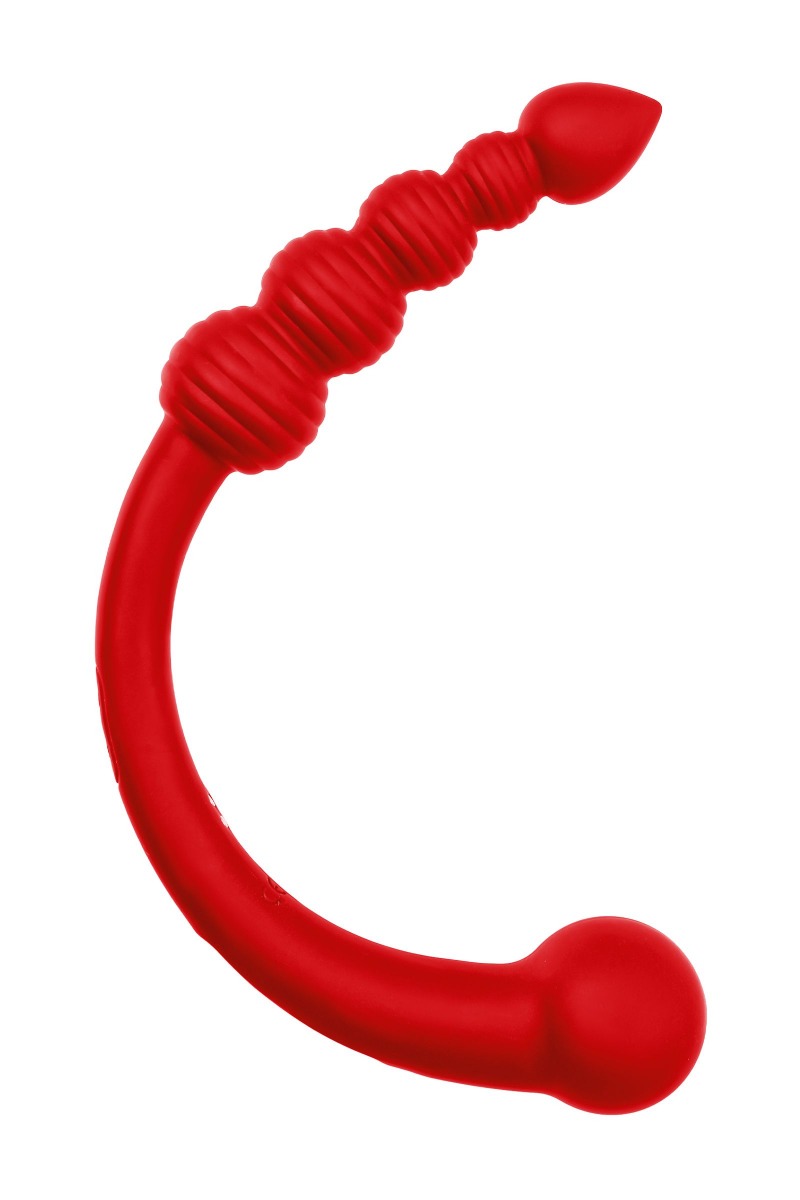 Если вы хотите привнести в свою интимную жизнь больше разнообразия, двусторонний вибратор из серии Black&Red станет вашим незаменимым спутником. Этот стильный и мощный аксессуар ярко красного цвета, оснащенный двумя моторами, идеально подходит для экспериментов как в соло-играх, так и в паре. Уникальная конструкция позволяет использовать его для различных видов стимуляции: вагинальной и анальной, а также для воздействия на точку G или точку Р. Гладкий ствол с широкой головкой (диаметр 4 см) — идеально подходит для глубокого и чувственного проникновения, даря насыщенные вибрации. Анальная цепочка из 4 шариков с ребристой поверхностью (диаметр от 2,3 до 3,5 см) — создаёт волнующую стимуляцию чувствительных зон, постепенно увеличивая интенсивность ощущений. Заканчивается каплевидным наконечником для более легкого введения. Оба конца этого вибратора оборудованы мощными моторами, которые предлагают 10 режимов вибрации, позволяя выбрать оптимальный уровень наслаждения для каждого момента. Водонепроницаемость по стандарту IPX6 даёт возможность использовать его даже в воде, превращая каждое мгновение в настоящую феерию удовольствия. Заряжается с помощью магнитного порта USB-кабеля. Включается и управляется двумя кнопками. Первая кнопка – включение. Вторая кнопка переключает режимы вибрации. Изготовленный из высококачественного силикона с нежным silk-покрытием и дополненный стильной хромированной вставкой, вибратор Black&Red не только безопасен и приятен на ощупь, но и радует своим элегантным внешним видом. Откройте мир новых ощущений с двусторонним вибратором Black&Red.