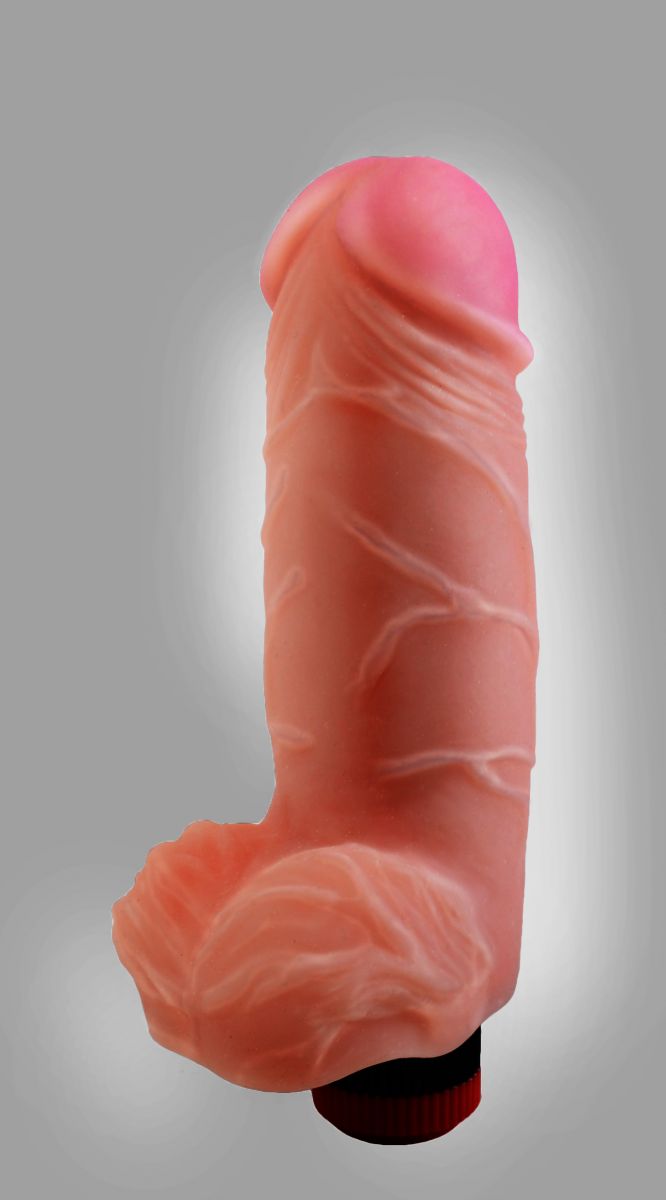 Вибромассажёр телесного цвета. Имеет форму члена с мошонкой и ярко выраженной головкой. Необычайно приятный, рельефный, выполненный из «киберкожи», передающей эффект мягкой реалистичной текстуры кожи, не имеет швов. Виброэлемент расположен ближе к головке для максимальной стимуляции. Степень вибрации регулируется при помощи кнопки, расположенной в основании. Рабочая длина - 14 см.