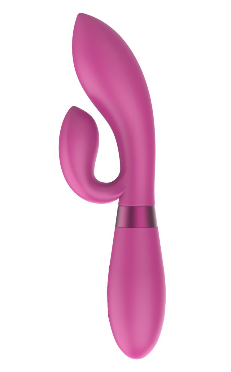 Вибромассажер Juna изготовлен из безопасного медицинского силикона, имеет 10 режимов вибрации и два моторчика, один из которых расположен в рабочей части изогнутого кончика и обеспечивает эффективную и удобную стимуляцию точки G, а второй - в клиторальном отростке массажера. Моторчики способны одновременно воздействовать на самые эрогенные зоны, вызывая приятные ощущения. Подходит как для соло-стимуляции, так и для разнообразия интимной жизни вместе с партнером во время прелюдии. Водонепроницаемый (IPX6). Удобное и легкое управление, USB-перезаряжаемый. Рабочая длина - 9,5 см.